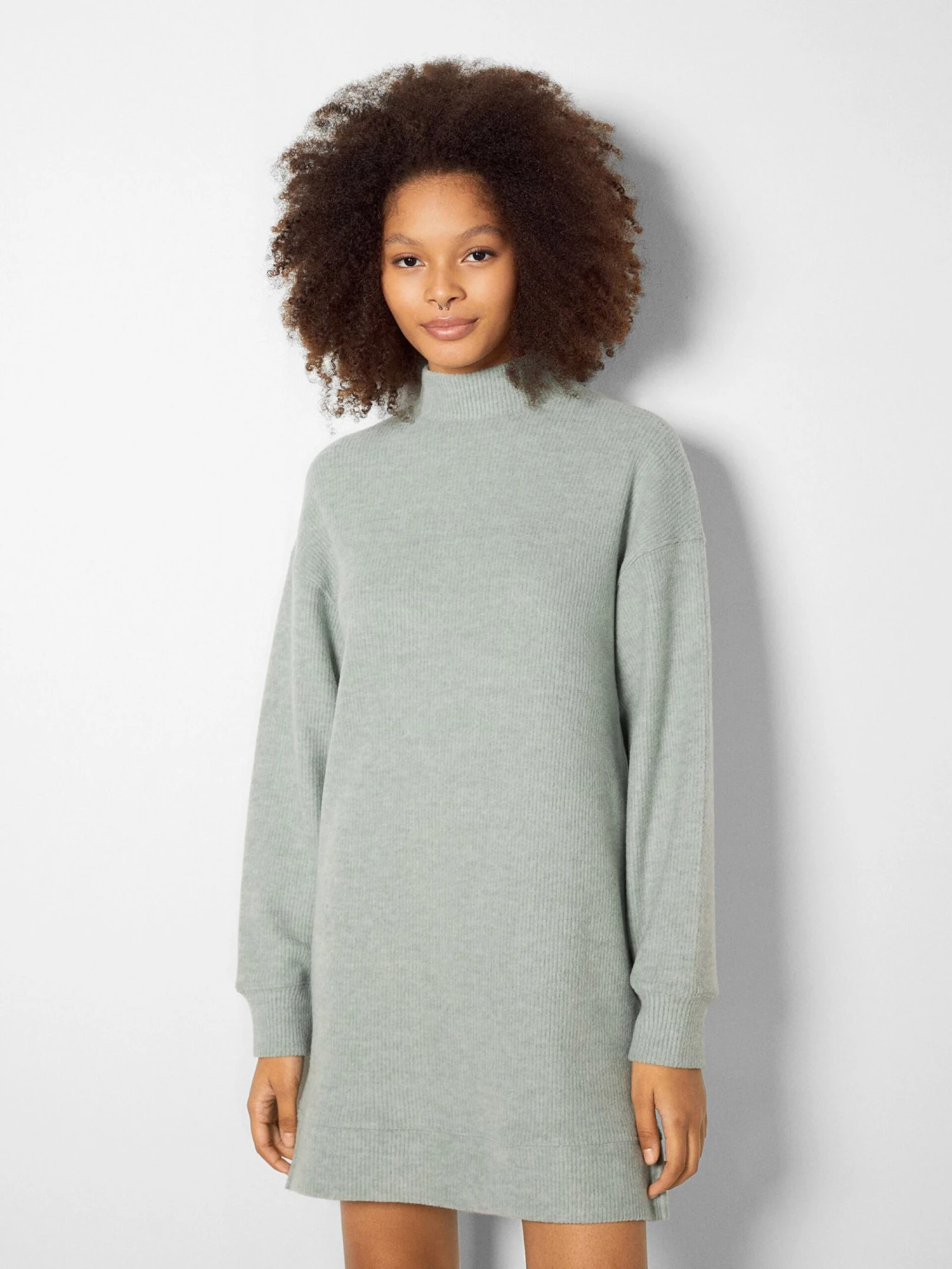 BERSHKA Robes Robes En Maille Femme Vert Pastel